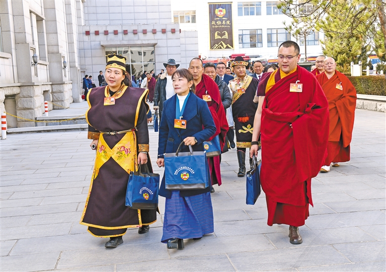 委員們精神飽滿地步入會場。記者 丹增群培 攝