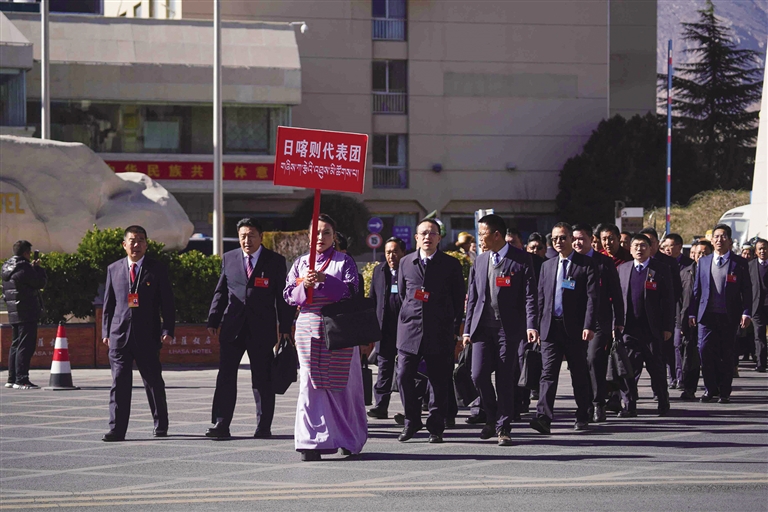 日喀則代表團(tuán)步入閉幕會(huì)場(chǎng)。