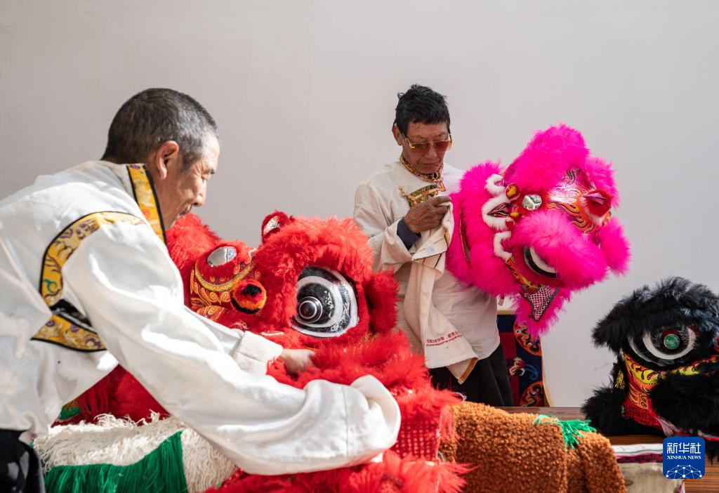過(guò)去受條件所限,鄧巴阿尼沒(méi)有閑錢購(gòu)買舞獅的道具,他就自己動(dòng)手,用布料和膠水做出獅頭,再給毯子縫上草繩編的毛發(fā)做成獅皮。“后來(lái)生活條件慢慢變好,政府也給了很多支持,我們不僅有錢購(gòu)買舞獅道具,還有機(jī)會(huì)去各地表演?!编嚢桶⒛嵴f(shuō)。2022年,由獅子舞改編的節(jié)目《吉韻碩督》登上了西藏電視臺(tái)的藏歷新年聯(lián)歡晚會(huì)。2023年,鄧巴阿尼和村民們又將獅子舞搬上了中國(guó)西藏旅游文化國(guó)際博覽會(huì)昌都館的舞臺(tái)。