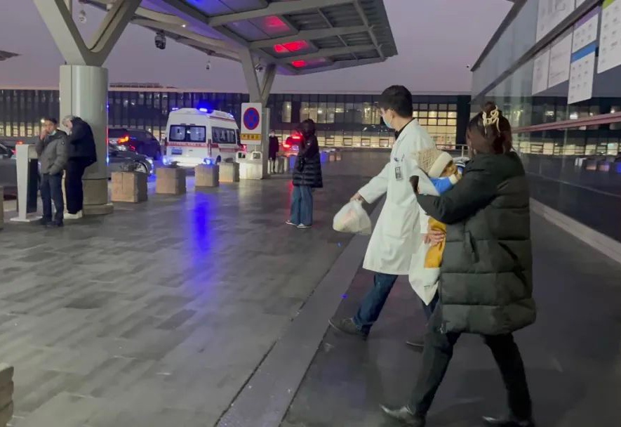 1月18日晚,浙大二院醫(yī)生接上德勒和他的媽媽?zhuān)茸o(hù)車(chē)也等候在機(jī)場(chǎng)外。新華社發(fā)(金宇婷攝)