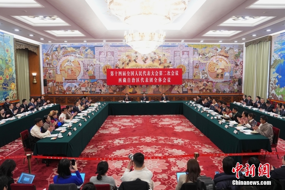 3月6日,出席十四屆全國人大二次會(huì)議的西藏代表團(tuán)在北京人民大會(huì)堂西藏廳舉行開放團(tuán)組會(huì)議,審議政府工作報(bào)告并回答記者提問。