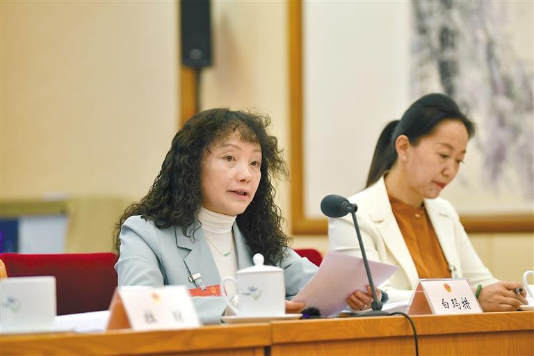 全國(guó)人大代表白瑪措在會(huì)上發(fā)言。 旦增西旦 攝