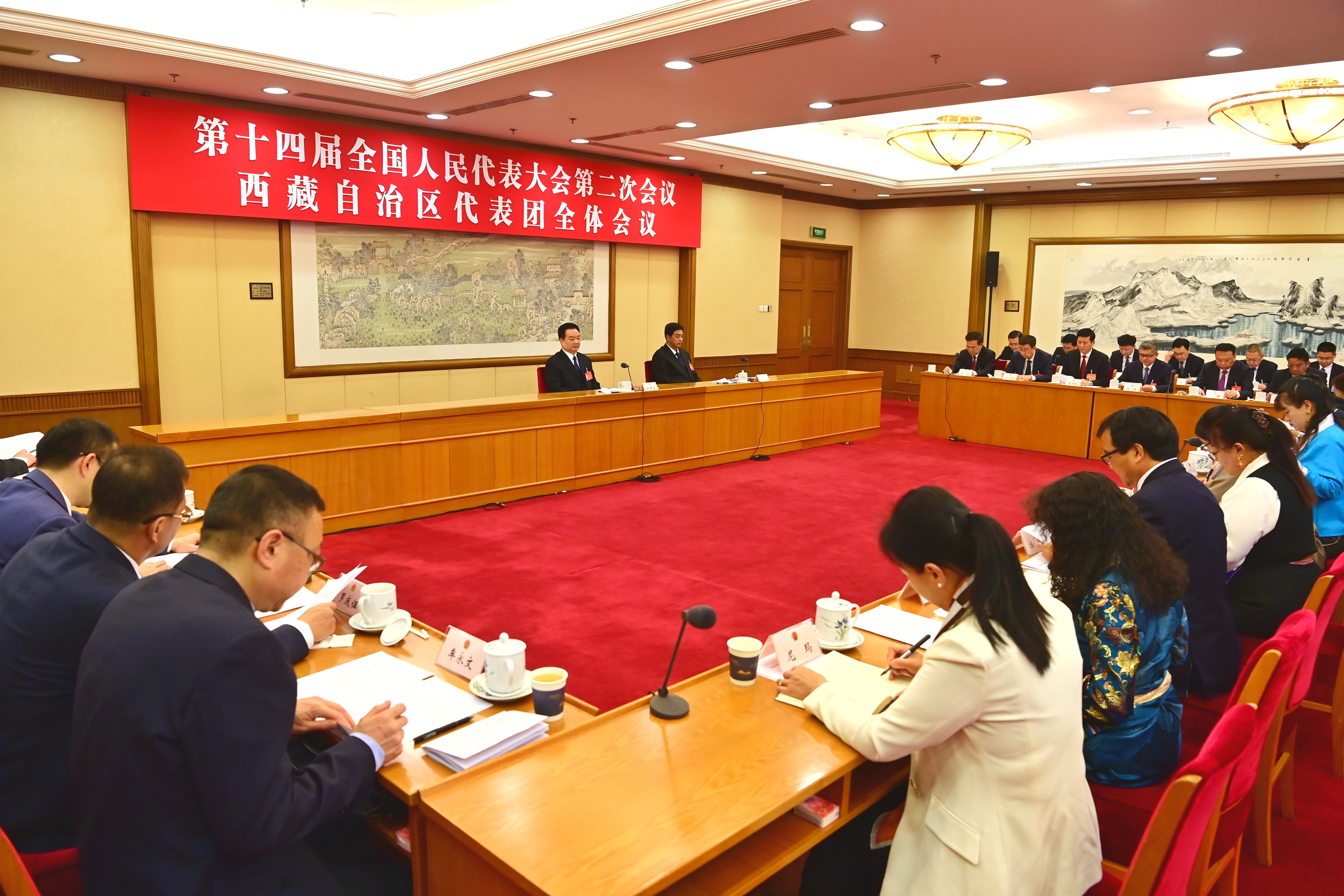 3月10日,西藏代表團舉行全體會議,繼續(xù)審議全國人大常委會工作報告、最高人民法院工作報告、最高人民檢察院工作報告;審議關于政府工作報告、年度計劃、年度預算的決議草案。