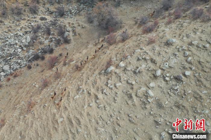 圖為林周縣境內(nèi)的白唇鹿。貢嘎來松 攝