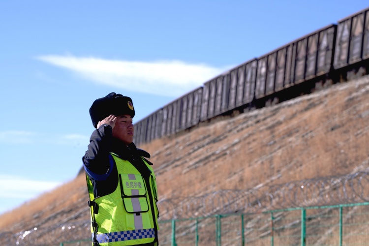 次仁歐珠在向列車敬禮。徐馭堯攝