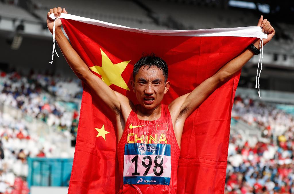 2018年第18屆亞運(yùn)會(huì)田徑男子馬拉松賽中,中國(guó)選手多布杰獲得季軍。新華社記者 王麗莉 攝