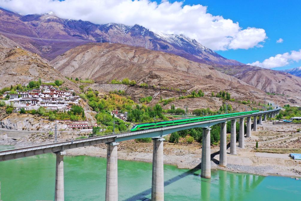 “復(fù)興號”列車奔馳在雪域高原(2022年4月14日攝)。新華社記者 覺果 攝