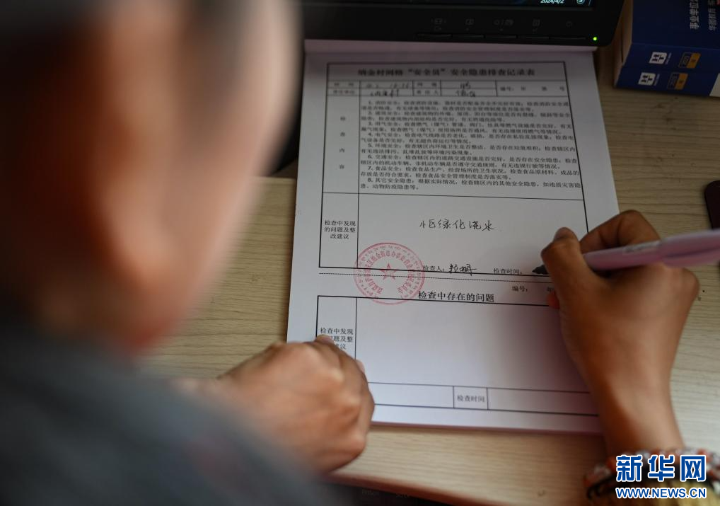 4月2日,納金村工作人員在和轄區(qū)民警對接網格相關工作。(新華社記者 晉美多吉 攝)