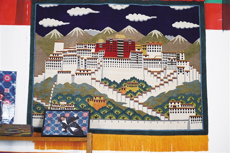 在藏毯廠陳列廳里,懸掛著一幅以布達(dá)拉宮為題材的藏毯?!把矍暗倪@幅藏毯已經(jīng)懸掛十年,沒(méi)有任何變形?!笨ν邎?jiān)藏毯廠工作人員彭志紅說(shuō),可見(jiàn)手工藏毯的質(zhì)量絕佳。