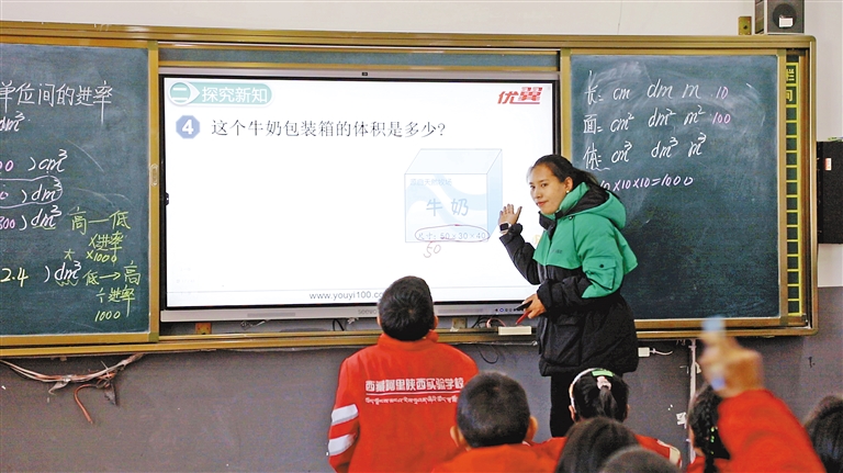 圖為阿里地區(qū)陜西實(shí)驗(yàn)學(xué)校教師利用多媒體平臺(tái)為學(xué)生授課。記者 洛桑旦增 達(dá)珍 永青 攝