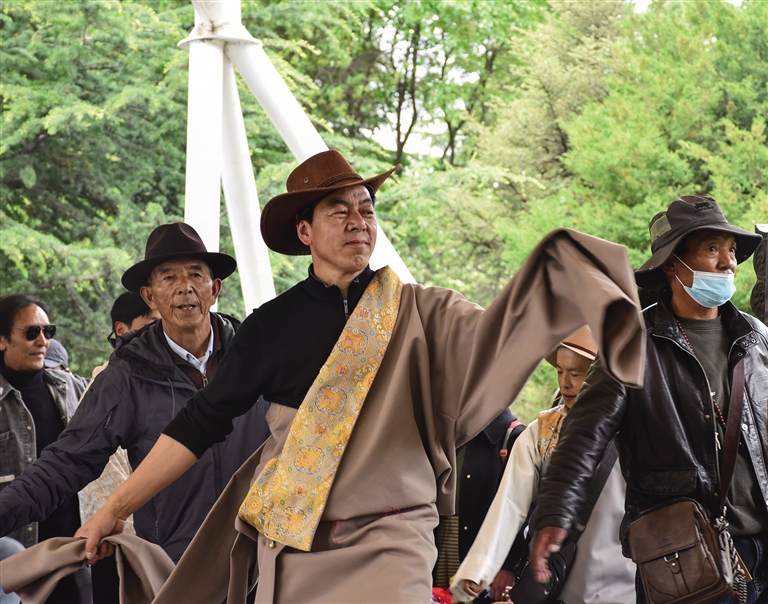“能在杭州絲綢城街頭看到我們那曲的‘果卓’,一股自豪感從心里油然而生?!痹谡憬贾葑x研的旦增松繞說(shuō),鍋莊舞已然成為大家了解西藏優(yōu)秀傳統(tǒng)文化的一個(gè)途徑,也因其親民的舞蹈形式深受大家的喜愛(ài)。圍成一圈跳上一段鍋莊,沒(méi)過(guò)多久,人與人的距離便近了起來(lái)。