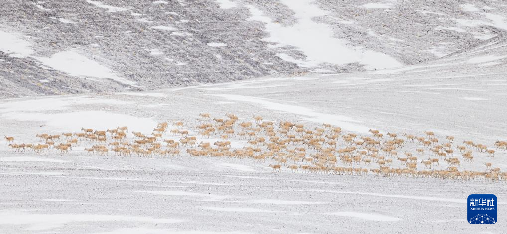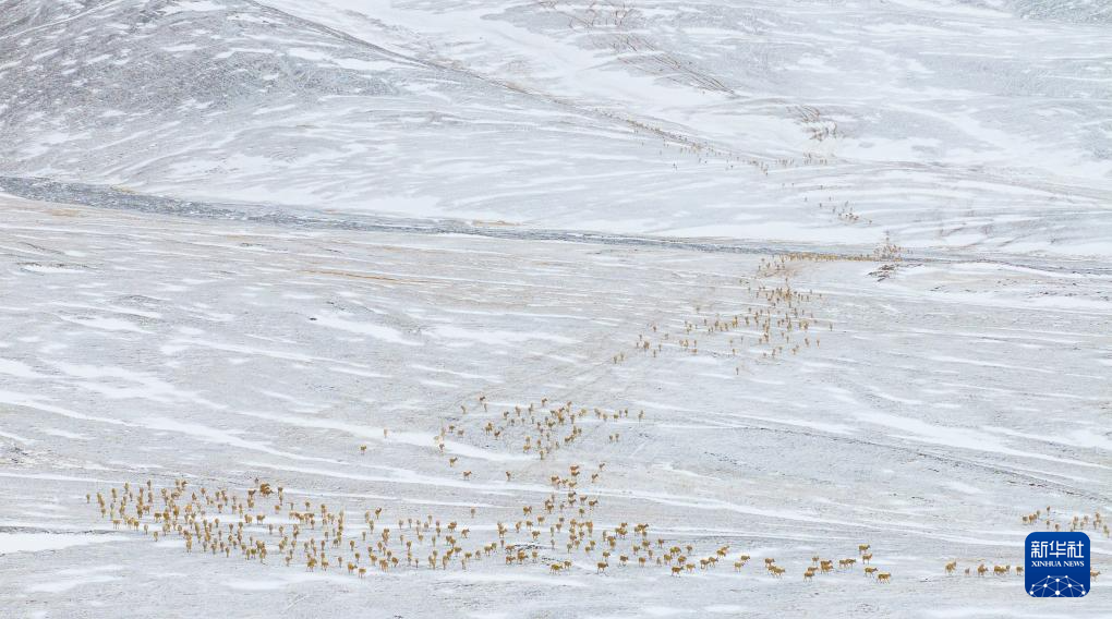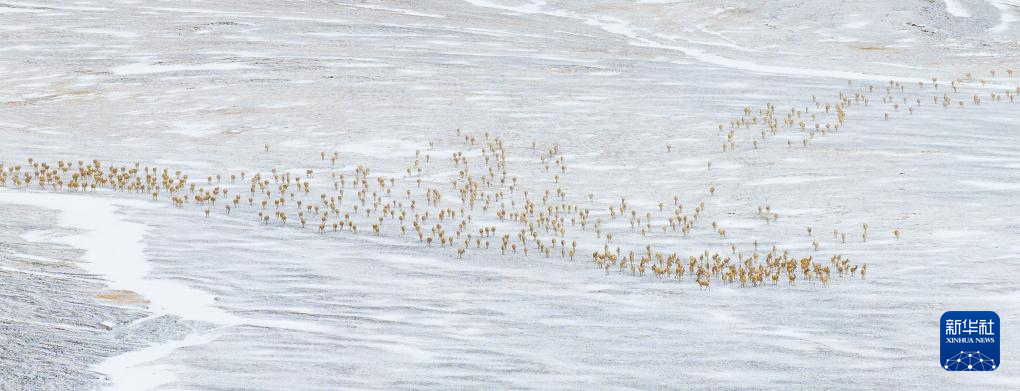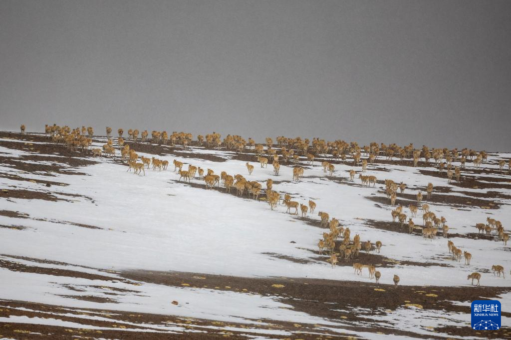近日,在位于西藏自治區(qū)北部的羌塘國家級自然保護區(qū),大群懷孕的雌性藏羚羊開始集結(jié)成群,向習慣產(chǎn)羔地遷徙。