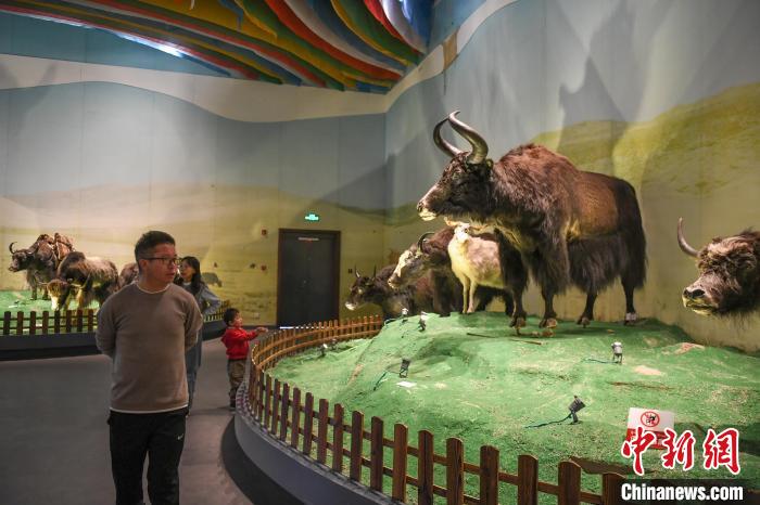 圖為市民參觀西藏牦牛博物館里的野牦牛標本。貢嘎來松 攝