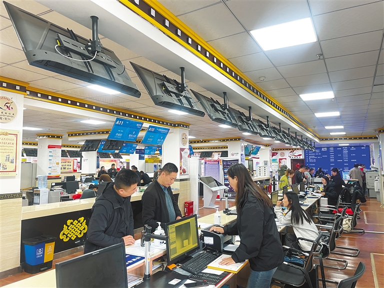 窗口是服務(wù)群眾的第一線。走進(jìn)山南市政務(wù)服務(wù)中心,只見(jiàn)在各服務(wù)窗口前辦理業(yè)務(wù)的群眾依次排隊(duì)、秩序井然,工作人員有條不紊地為群眾提供貼心服務(wù),耐心細(xì)致地為群眾答疑解惑。
