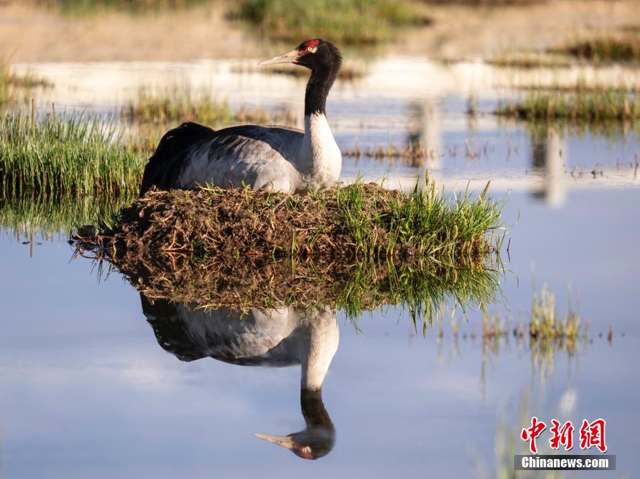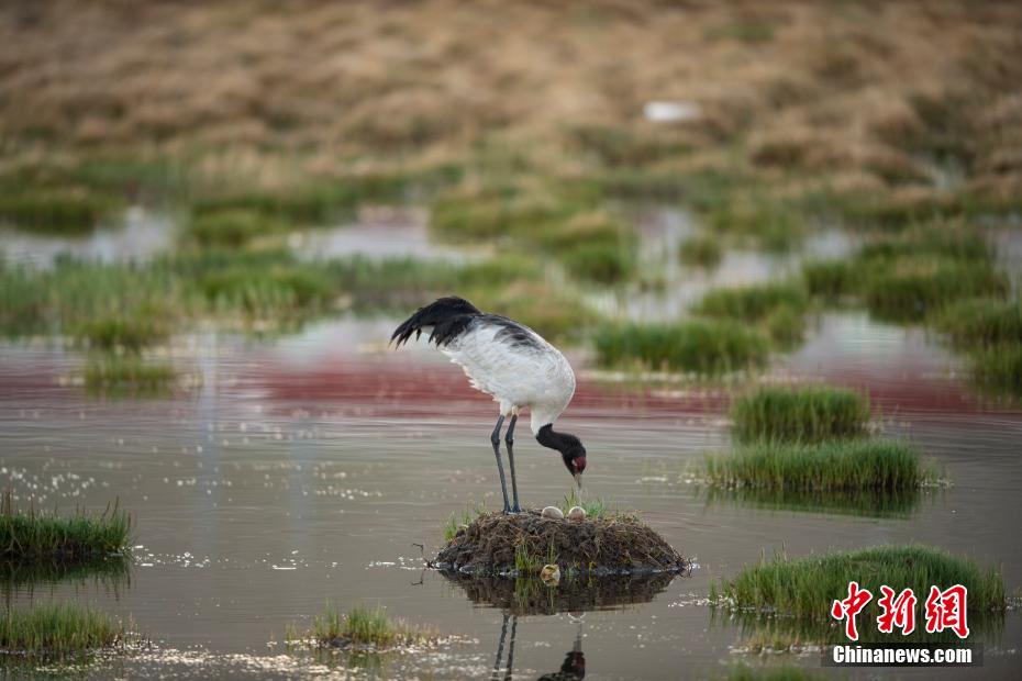 6月12日,西藏那曲市申扎縣濕地里一只黑頸鶴正準(zhǔn)備孵蛋。申扎縣,平均海拔超過4500米,是黑頸鶴在中國的主要繁殖地之一。每年4月到6月,成群的黑頸鶴會來到這里,筑巢、孵化、養(yǎng)育下一代。近年來,為了保護這些珍貴的生靈,申扎縣采取了一系列措施,設(shè)立了監(jiān)測站,對黑頸鶴的棲息地進(jìn)行24小時監(jiān)控,確保它們的繁殖不受干擾。黑頸鶴是國家一級保護動物,也是世界上唯一一種生長、繁殖在高原的鶴類。貢嘎來松 攝