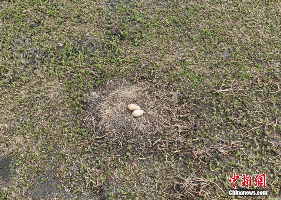 6月12日,西藏那曲市申扎縣濕地里的黑頸鶴蛋。申扎縣,平均海拔超過4500米,是黑頸鶴在中國的主要繁殖地之一。每年4月到6月,成群的黑頸鶴會來到這里,筑巢、孵化、養(yǎng)育下一代。近年來,為了保護這些珍貴的生靈,申扎縣采取了一系列措施,設(shè)立了監(jiān)測站,對黑頸鶴的棲息地進(jìn)行24小時監(jiān)控,確保它們的繁殖不受干擾。黑頸鶴是國家一級保護動物,也是世界上唯一一種生長、繁殖在高原的鶴類。貢確 攝(無人機照片)