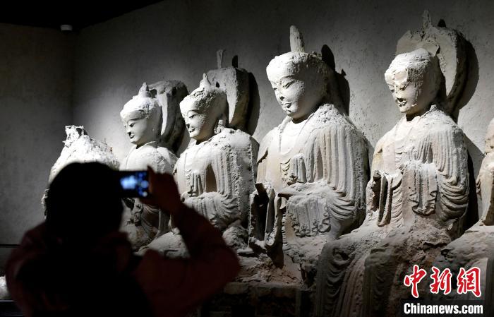 隨著西藏旅游旺季的到來,“高原城市會客廳”西藏博物館也迎來參觀熱潮。圖為6月19日,觀眾正在拍攝展陳的艾旺寺泥塑像。中新社記者 李林 攝
