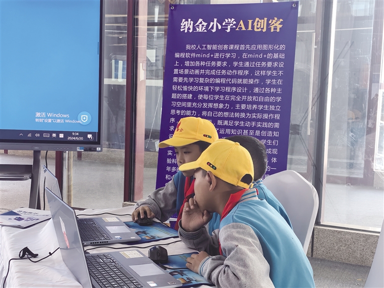 除了植物自動檢測器外,現(xiàn)場還有實(shí)驗(yàn)小學(xué)學(xué)生、納金小學(xué)學(xué)生用電腦編程的“音樂會”“氣控游戲”等,各類童真的奇思妙想在數(shù)字教育中得到實(shí)現(xiàn)。