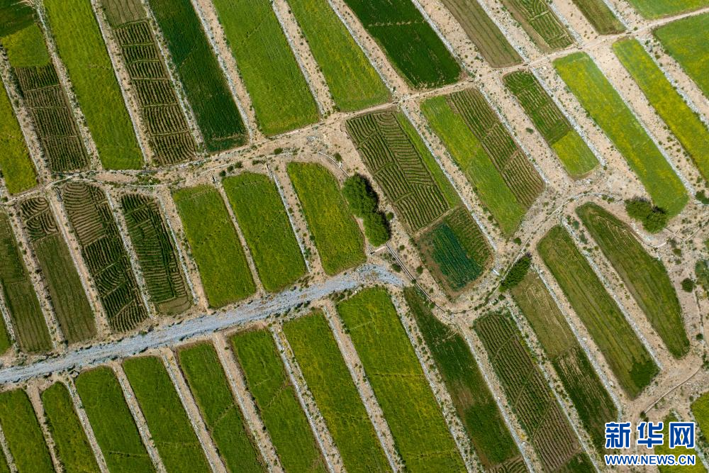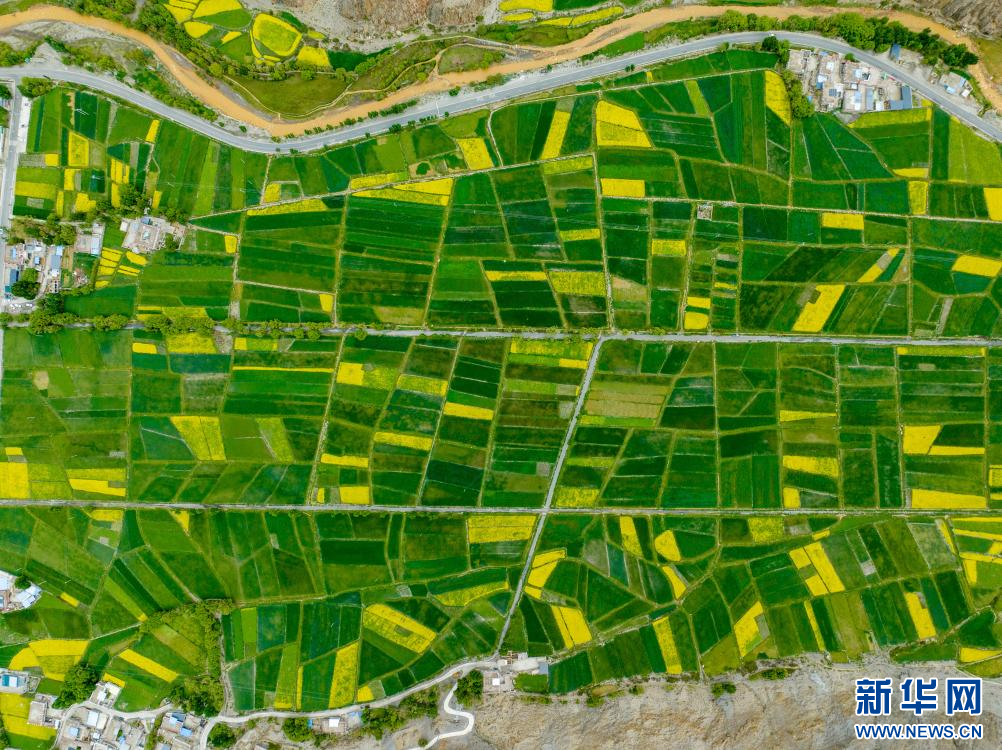 6月21日在西藏山南市乃東區(qū)境內(nèi)拍攝的田園風(fēng)光(無人機(jī)照片)。新華網(wǎng) 旦增努布 攝