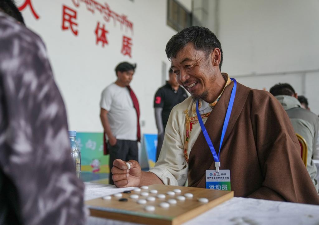 6月24日,曲水隊(duì)選手尼瑪達(dá)瓦在藏棋比賽中。新華社記者 晉美多吉 攝