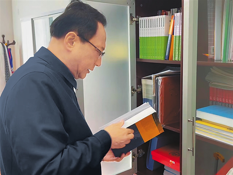 圖為尼瑪扎西在查閱藏文信息系統(tǒng)技術(shù)資料。記者 索朗群培 攝