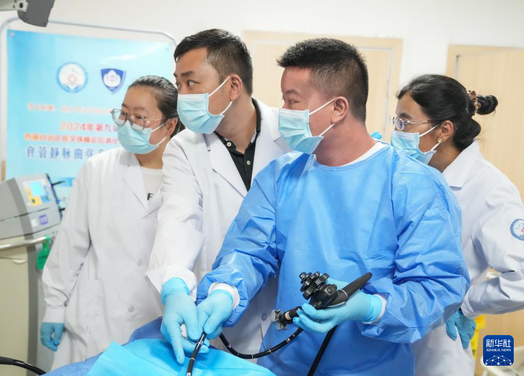 在日喀則市人民醫(yī)院,段穎騫(左一)在進行內(nèi)鏡手術(7月8日攝)。新華社記者 丁汀 攝