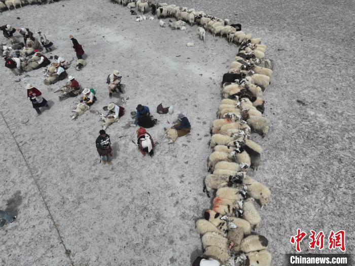 在剪羊毛現場,牧民們分工明確,動作熟練。他們先將綿羊固定在地面上,然后用特制的剪刀將羊毛一片片剪下。不到一會兒功夫,一只藏羊便煥然一新,輕松地站立起來。