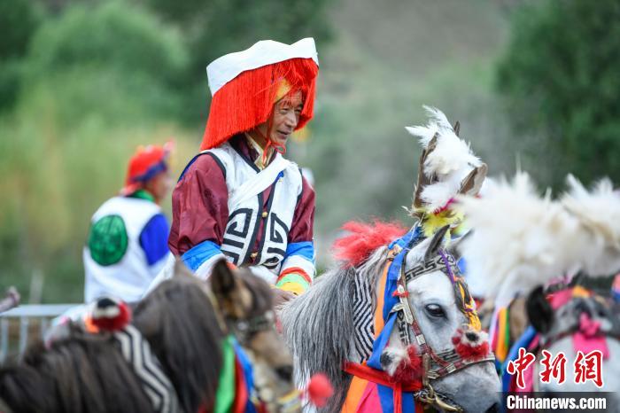 7月21日,西藏自治區(qū)拉薩市堆龍德慶區(qū)馬鎮(zhèn)朗巴村民眾賽馬歡度“望果節(jié)”?!巴?jié)”民俗已有1500多年的歷史,是國家級非物質(zhì)文化遺產(chǎn)。圖為騎手準(zhǔn)備比賽。中新社記者 貢嘎來松 攝