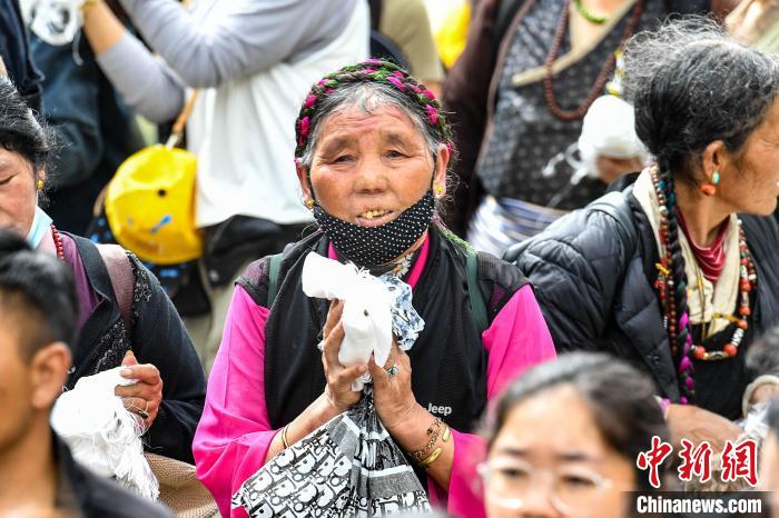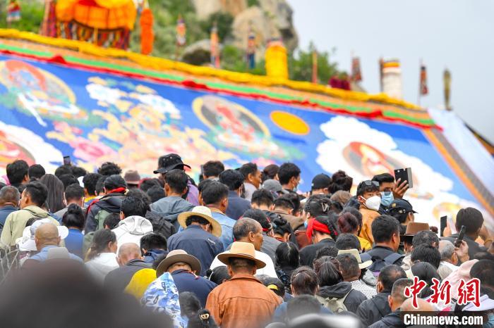 記者跟隨信眾和游客沿著山道緩緩前行,共同目睹那震撼人心的展佛儀式。當巨大的釋迦牟尼佛像唐卡徐徐展開,信眾們向巨幅釋迦牟尼唐卡拋出寓意吉祥的哈達,雙手合十,眼中滿是敬畏與虔誠,口中念念有詞,誠摯地祈禱著風調雨順、幸福安康。
