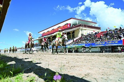 據(jù)了解,今年主辦方從青海等地邀請(qǐng)了特色高原馬種前來展示?;顒?dòng)現(xiàn)場(chǎng),記者看到,騎手們身著民族服飾,英姿颯爽;駿馬裝飾五色綢帶,躍躍欲試;觀眾扶老攜幼,笑逐顏開。今年的賽馬節(jié)還新增了馬上刀術(shù)、馬上烏爾朵、騎馬射擊、騎馬拾哈達(dá)等四項(xiàng)賽馬競(jìng)技活動(dòng)。