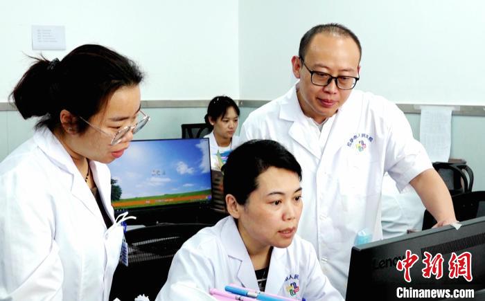圖為醫(yī)生馮祥(右二)和同事們?cè)诓榉俊Zw朗 攝