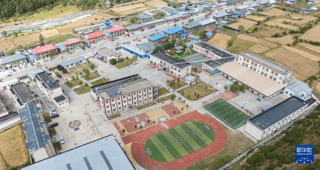 9月4日拍攝的娘蒲鄉(xiāng)中心小學(xué)(無人機照片)。新華社記者 晉美多吉 攝