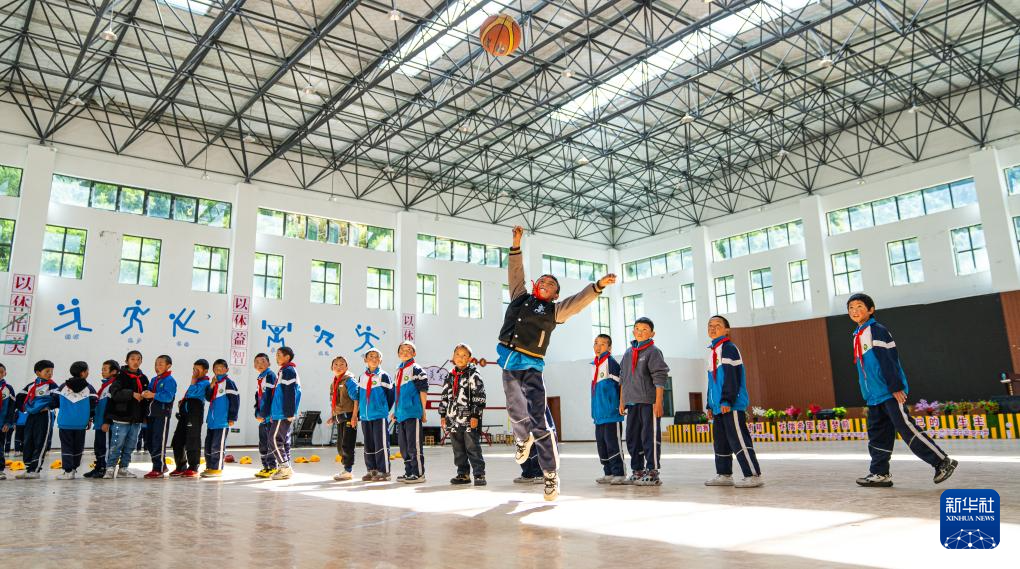 娘蒲鄉(xiāng)中心小學(xué)的學(xué)生在上體育課(9月4日攝)。新華社記者 劉洲鵬 攝