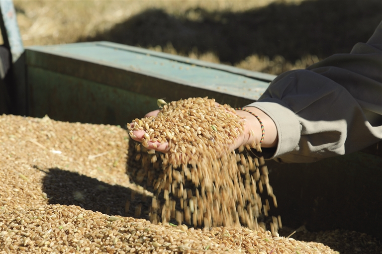 “我家共有92畝多的農(nóng)田,家里有三個(gè)勞力,我負(fù)責(zé)秋收,其余兩個(gè)外出務(wù)工,以前我們家秋收工作需要一個(gè)月多的時(shí)間,現(xiàn)在農(nóng)業(yè)機(jī)械化了,再也不用擔(dān)心秋收工作,聽(tīng)說(shuō)今年賣(mài)良種每斤有0.3元的補(bǔ)貼,準(zhǔn)備把自家10000斤良種賣(mài)掉,預(yù)計(jì)今年有56000多元的收入?!闭诎徇\(yùn)青稞粒的村民普瓊高興地說(shuō)道。