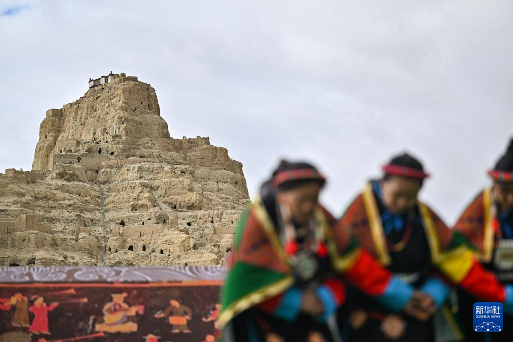 在西藏阿里地區(qū)札達縣古格王國遺址腳下,當?shù)卮迕癖硌荨靶琛保?月11日攝)。新華社記者 孫瑞博 攝