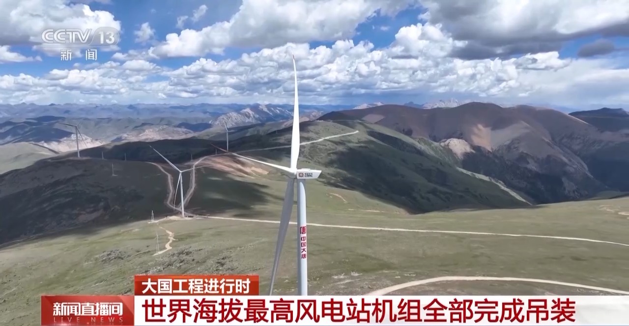 在海拔5000多米的青藏高原,世界海拔最高的風(fēng)電機組剛剛完成全部吊裝。