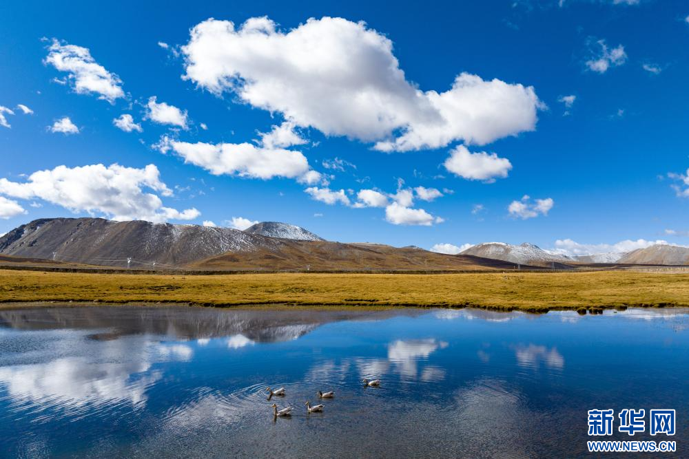 10月6日,在西藏自治區(qū)那曲市嘉黎縣境內(nèi)拍攝的斑頭雁。新華網(wǎng) 旦增努布 攝