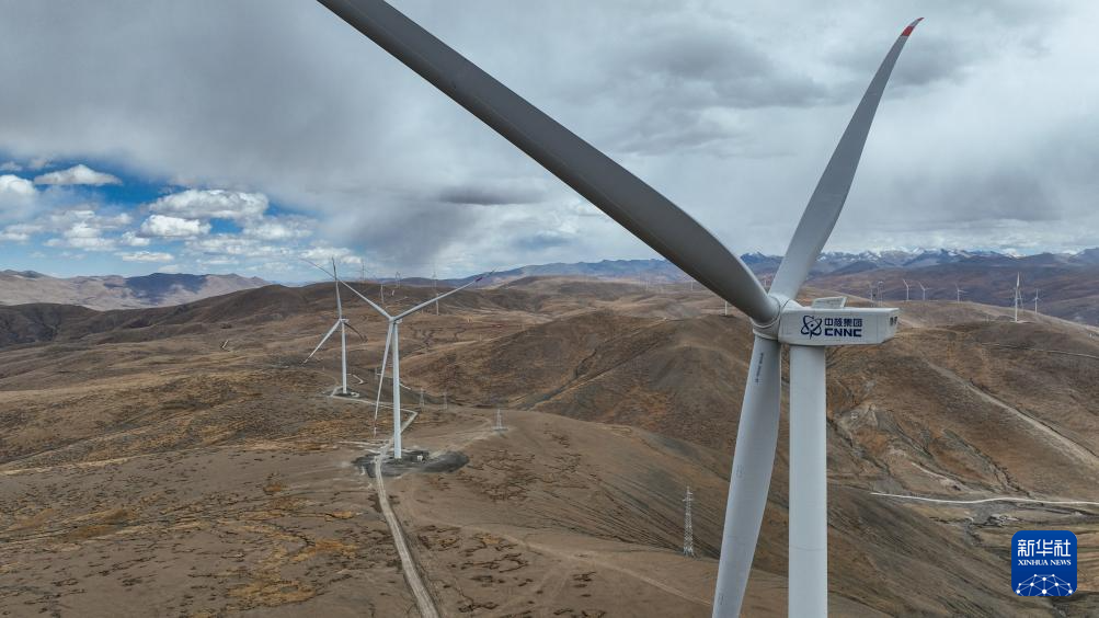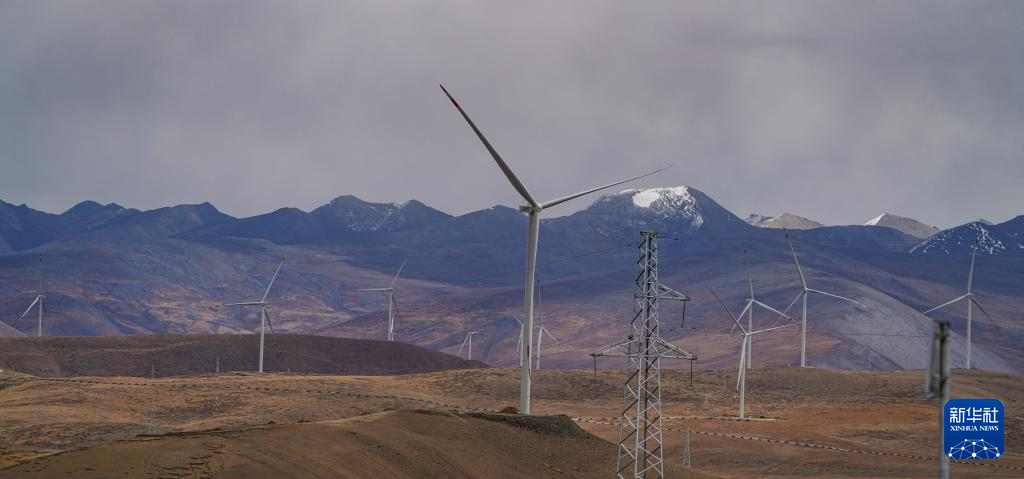 10月17日拍攝的位于西藏日喀則市薩迦縣的風(fēng)力發(fā)電機組。新華社記者 晉美多吉 攝?