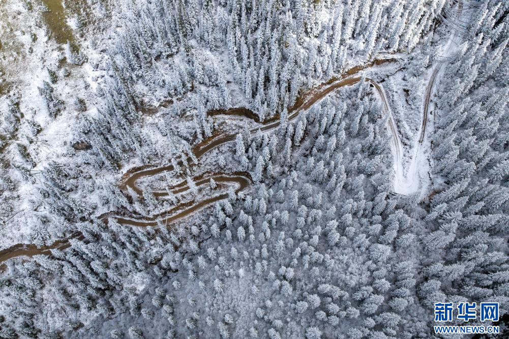 10月13日,在西藏昌都市八宿縣境內(nèi)川藏公路沿途拍攝的雪山(無人機照片)。新華網(wǎng) 旦增努布 攝