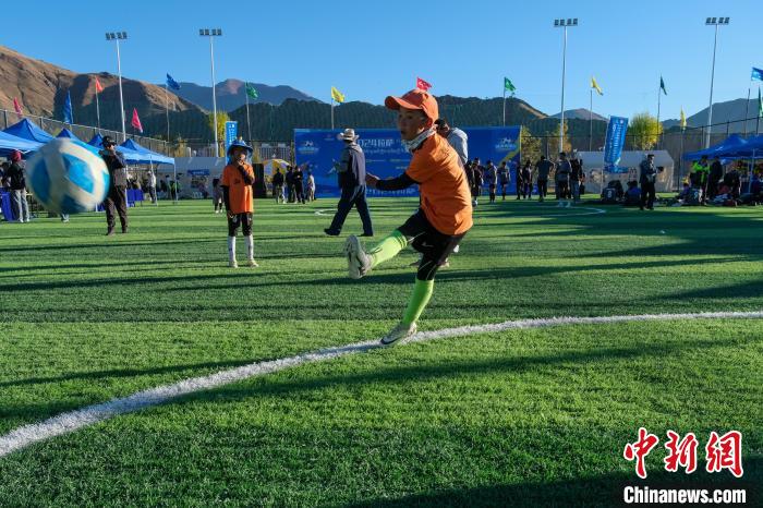 足球運(yùn)動(dòng)在拉薩擁有廣泛的基礎(chǔ),圖為10月26日下午,一群孩子在2024拉薩“村超”足球聯(lián)賽現(xiàn)場(chǎng)練習(xí)射門。中新社記者 江飛波 攝
