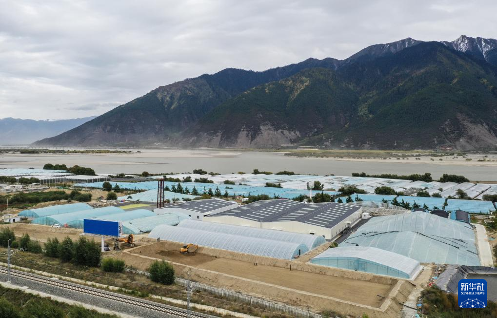 在西藏林芝市米林農(nóng)場內(nèi)的粵林高原漁業(yè)科技園,依托當?shù)赜欣h(huán)境而興建的養(yǎng)殖育種基地初顯規(guī)模(無人機照片,10月24日攝)。新華社記者 李賀 攝