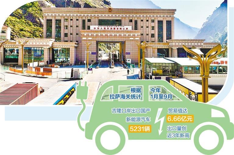 在位于日喀則市的吉隆口岸,裝載著一輛輛國(guó)產(chǎn)新能源汽車的大卡車正緩緩駛出國(guó)門,駛向尼泊爾。今年以來(lái),新能源汽車出口形勢(shì)良好,貿(mào)易值屢創(chuàng)新高,成為西藏外貿(mào)新的增長(zhǎng)點(diǎn)。根據(jù)拉薩海關(guān)統(tǒng)計(jì),今年1月至9月,吉隆口岸出口國(guó)產(chǎn)新能源汽車5231輛,貿(mào)易值達(dá)6.66億元,出口量創(chuàng)近3年新高。