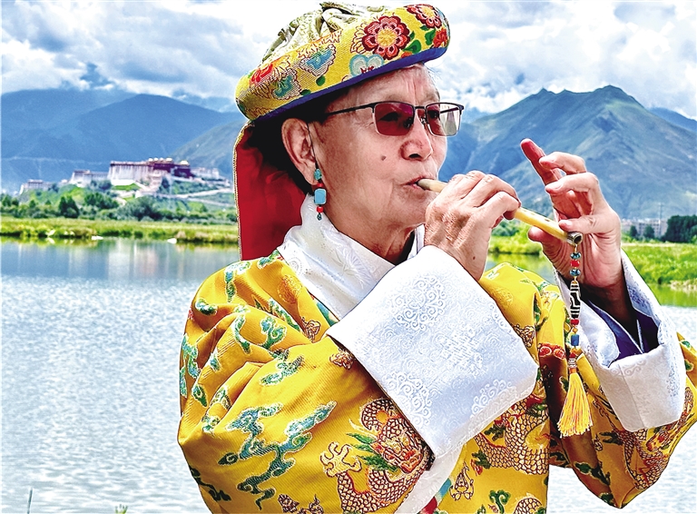鷹笛是來(lái)自于大自然的樂(lè)器,吹奏出的每個(gè)音符蘊(yùn)含了大自然的靈性。笛聲如同在天空中任意翱翔的雄鷹,高亢且空靈,似乎在訴說(shuō)著千年的傳奇。今年74歲的次旦,是國(guó)家一級(jí)演奏員,也是自治區(qū)級(jí)藏族鷹笛藝術(shù)非物質(zhì)文化遺產(chǎn)代表性傳承人。次旦老師從小和鷹笛結(jié)下了不解之緣,并立志要將藏族鷹笛藝術(shù)發(fā)揚(yáng)光大。如今,退休在家的次旦老師依舊奔忙在傳播藏族鷹笛藝術(shù)的工作中,為傳承“非遺”貢獻(xiàn)著自己的力量。