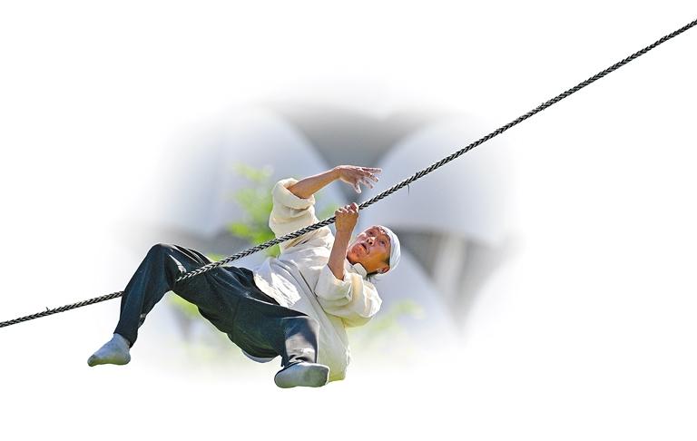 第十二屆全國(guó)少數(shù)民族傳統(tǒng)體育運(yùn)動(dòng)會(huì),西藏隊(duì)選手表演《強(qiáng)桿踏許》。