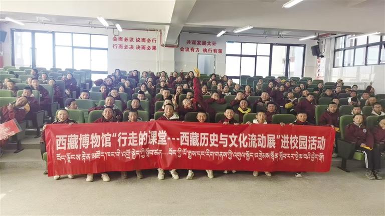 在拉薩市城關區(qū)教育局、拉薩市堆龍德慶區(qū)教育局的積極支持和各個學校的大力配合下,此次活動從12月4日開始,將陸續(xù)在拉薩市堆龍德慶區(qū)、城關區(qū)相關中小學校開展。此次流動展將西藏博物館榮獲全國十大精品陳列特別獎的基本陳列《雪域長歌——西藏歷史與文化》《離太陽最近的人——西藏民俗文化》通過大屏幕呈現(xiàn)在廣大青少年兒童面前,由專業(yè)講解員對一件件精品文物進行解讀,將悠久的歷史和璀璨的文化呈現(xiàn)給廣大師生。