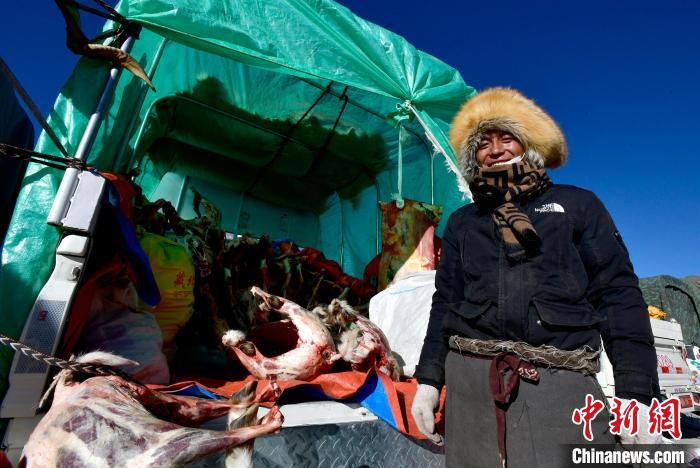 圖為畜產(chǎn)品展銷會上,牧民展示售賣的羊肉。李林 攝