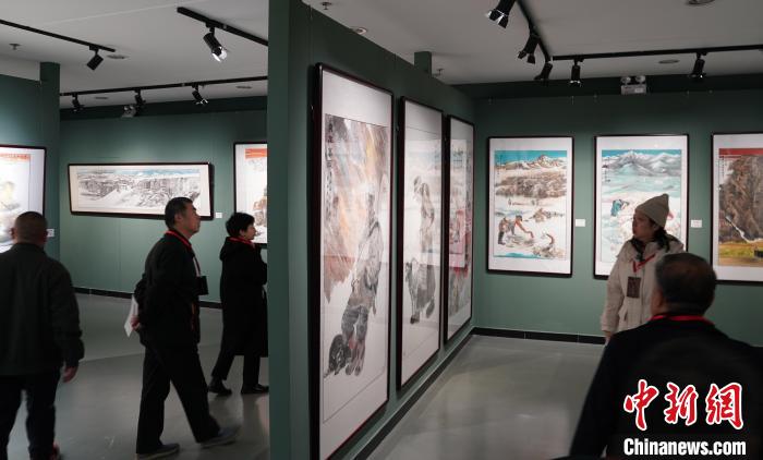 圖為12月8日,“家在高原”中國畫作品展現(xiàn)場。中新社記者 蘇丹 攝