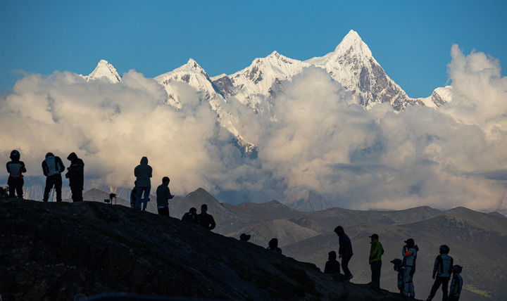 游客在色季拉山口的川藏公路邊觀賞南迦巴瓦峰風(fēng)光(2023年9月5日攝)。新華社記者 丁增尼達(dá) 攝