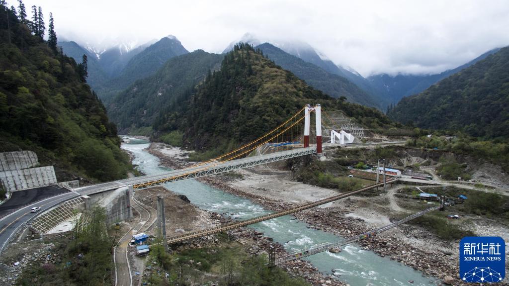 2016年3月29日拍攝的剛建成的通麥大橋?!巴溙祀U”路段位于西藏波密縣和八一鎮(zhèn)之間,這里是整個川藏公路線最險的一段。2012年開始,“通麥天險”被納入川藏公路線改造計劃。2016年4月13日正式通車。新華社記者 普布扎西 攝
