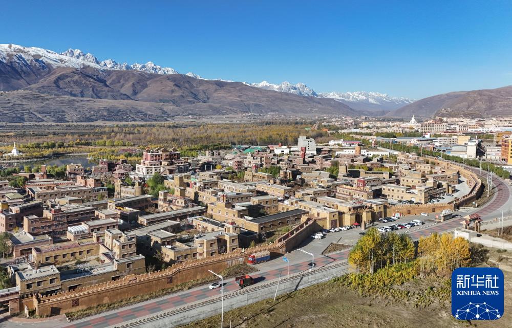 這是2024年10月29日在四川省甘孜藏族自治州拍攝的國道317公路,路邊是甘孜縣格薩爾王城景區(qū)(無人機照片)。新華社記者 王曦 攝